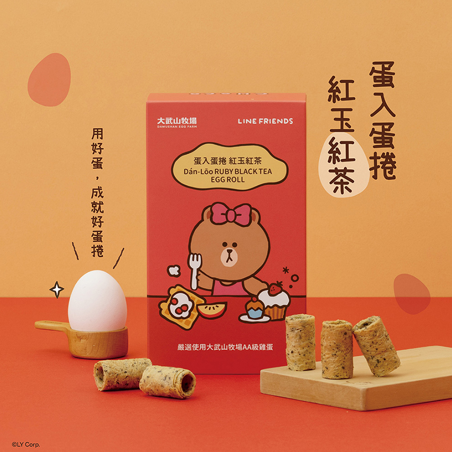 內容簡介 ❤️ 紅玉紅茶蛋捲化熊美的優雅下午茶,最適合與閨蜜分享!❤️ 嚴選南投魚池紅玉紅茶葉,細細品味蛋香與茶香交融出淡雅茶味,就像喝茶般回甘,是你下午茶時光的優雅首選。【紅玉紅茶|一口蛋捲】用嚴選南投魚池紅玉紅茶香濃蛋香過後有淡淡茶香的餘韻剛好一口大小不掉屑六圈工法層層堆疊 口感鬆脆有層次喜愛茶點的你絕對不能錯過《大武山牧場》以五星級牧場的規格飼養雞隻,從源頭把關品質,所有雞蛋皆須經過14道洗選檢驗的層層把關,才能成為具備國際級水準的AA級鮮蛋!承襲對雞蛋高品質的追求,將之發揚光大,以牧場直送最新鮮的蛋,製成自有的烘焙系列產品「蛋入蛋捲」。「蛋入」取名自雞蛋融入美食之意,同時也是台語伴手禮「等路」的諧音,《大武山牧場》希望將對雞蛋的用心,傳遞在「蛋入蛋捲」中,帶出送禮人最真摯的問候與關心!「大武山牧場 蛋入蛋捲」立志成為最貼心的蛋捲,外觀繽紛亮眼、同時融入永續再利用的精神。輕巧包裝不怕受潮,用好蛋打造出來的好蛋捲,一捲小巧入口不掉屑,保證讓蛋捲控想要一口接著一口,送禮自用兩相宜!
