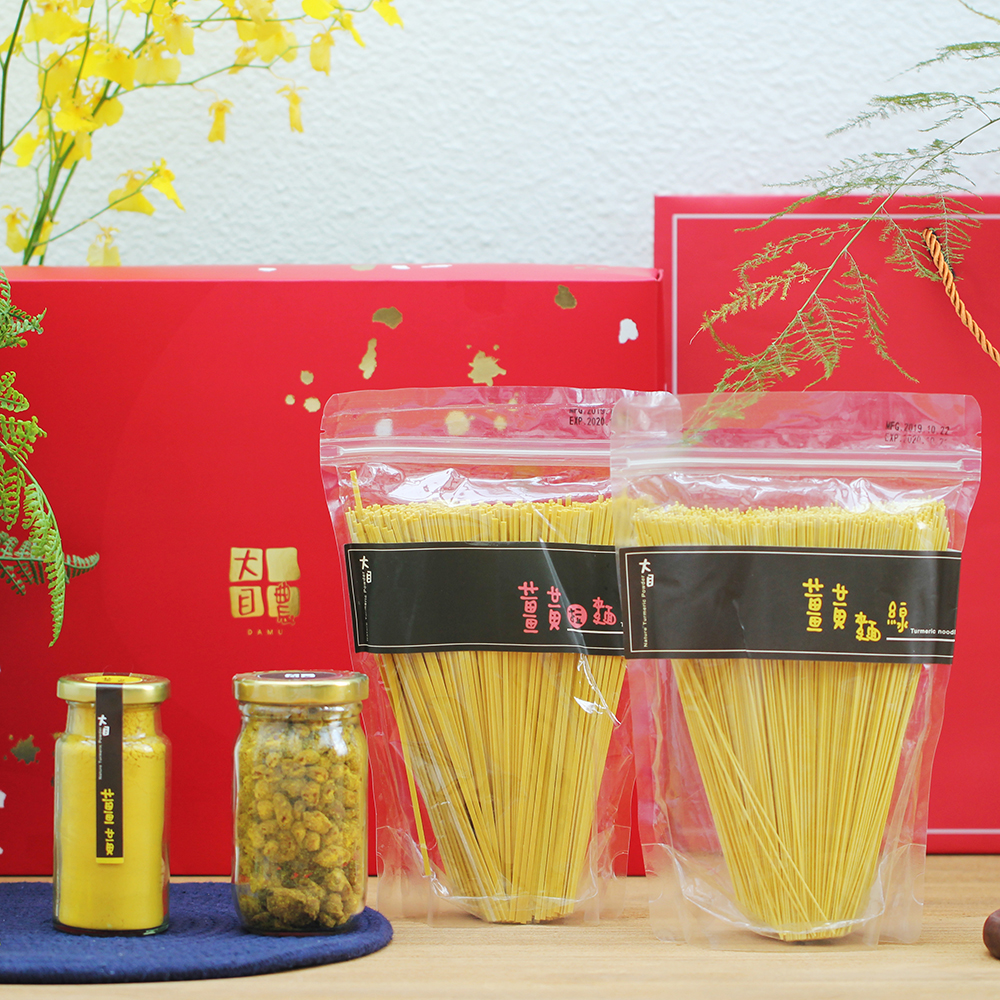 | 用途 / | 紅薑養生禮 薑黃粉 嚴選秋鬱金薑黃,薑黃素含量高,細緻研磨,加入牛奶、豆漿或料理中,補充營養、提升活力。 薑黃黑糖塊 純薑黃與手工黑糖熬製,辛香中帶著甜蜜溫潤,是冬季暖身、補鐵養氣的安心飲品。 薑黃麵線 薑黃連皮研磨入粉,與小麥製成無添加日曬麵線,保留天然纖維,口感滑韌、久煮不糊,熱湯、拌麵都合適。 薑黃拉麵 Q彈有嚼勁的手工拉麵,結合薑黃的獨特香氣,營養滿分,讓日常的一碗麵也能成為養生佳餚。 |