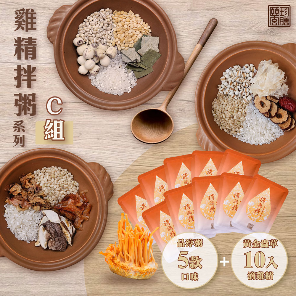 【頤珍宮膳】雞精拌粥系列C組-黃金蟲草滴雞精X10+御品粥X5口味