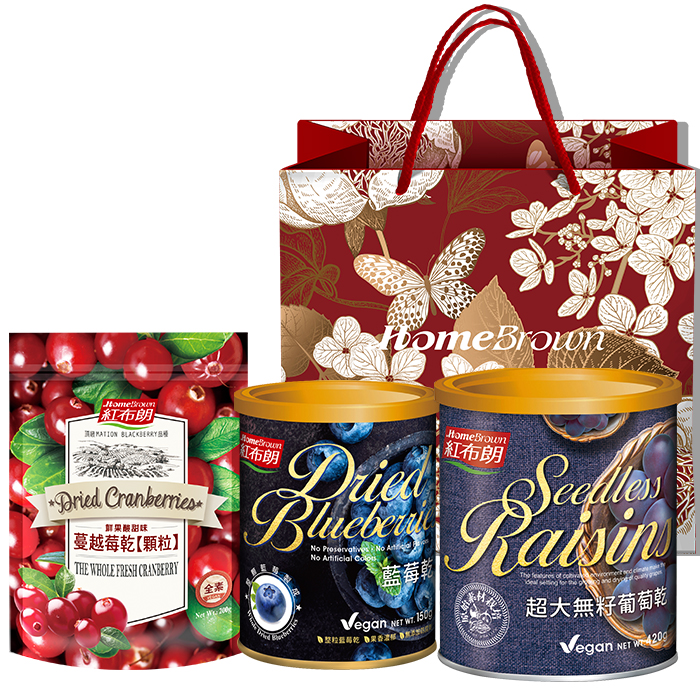 | 商品描述 | 紅布朗 超高人氣綜合果乾組 (蔓越莓乾顆粒+藍莓乾+超大無籽葡萄乾):休閒點心零食健康營養加分全程採自動化生產品質嚴謹好安心全素.香Q微甜風味,果香濃郁.無添加防腐劑 |