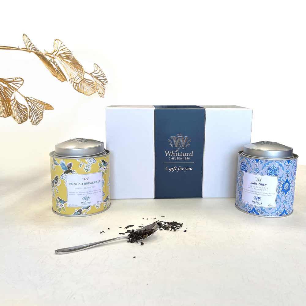 商品描述 | Whittard 英倫雙韻茶香禮盒:當清晨的第一縷陽光輕灑在窗邊,一杯濃郁的英式早餐紅茶,為您迎接新的一天;而在悠閒的午後,伯爵紅茶那迷人的香氣,帶來無與倫比的放鬆時光 |