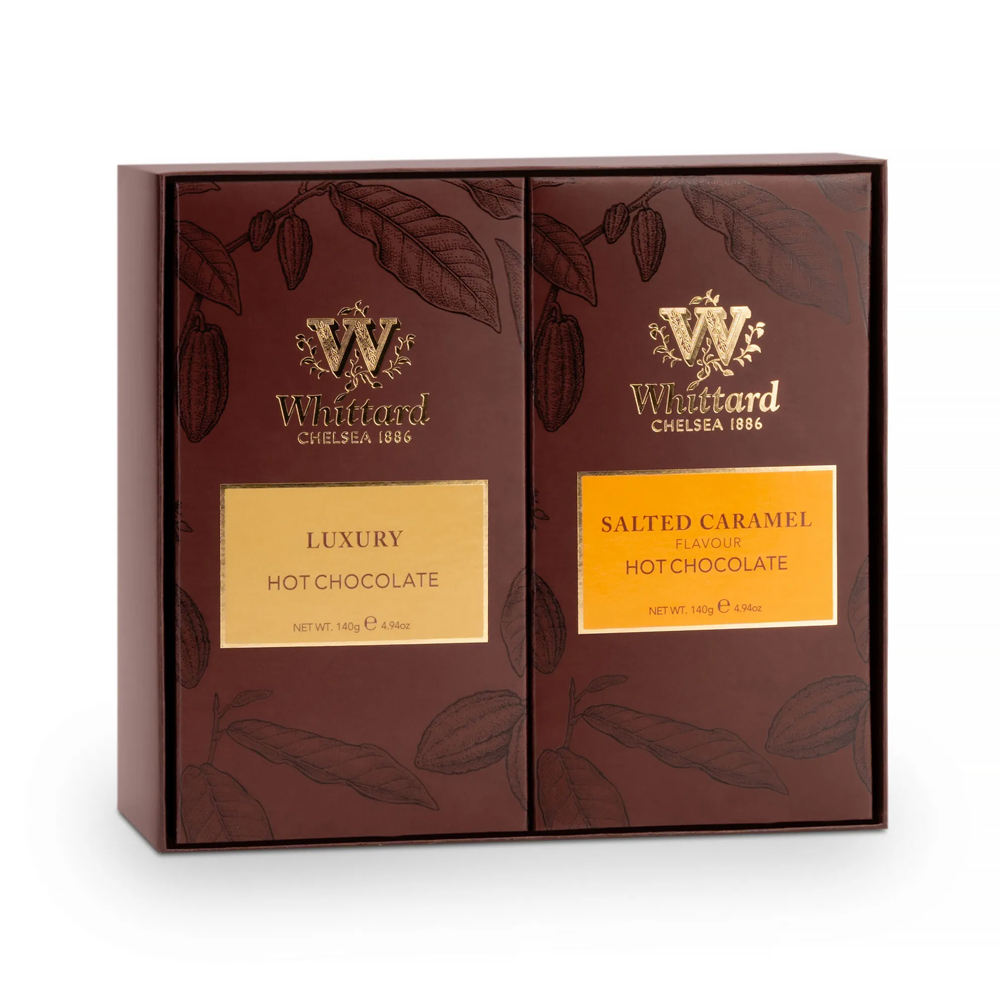 商品描述 | Whittard 經典巧克力粉禮盒-2入組:在家也能享受精品級熱巧克力!嚴選二款暢銷全球最佳口味,如絲滑般且柔順口感的經典奢華巧克力粉,搭配香醇濃郁略帶甘甜的70%巧克力可可 |