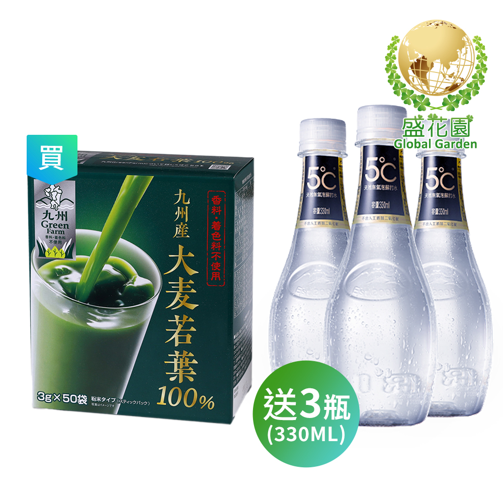 盛花園 日本大麥若葉青汁 送海昌無氣泡蘇打水3瓶(青汁50入 盒、贈品330ml 瓶)