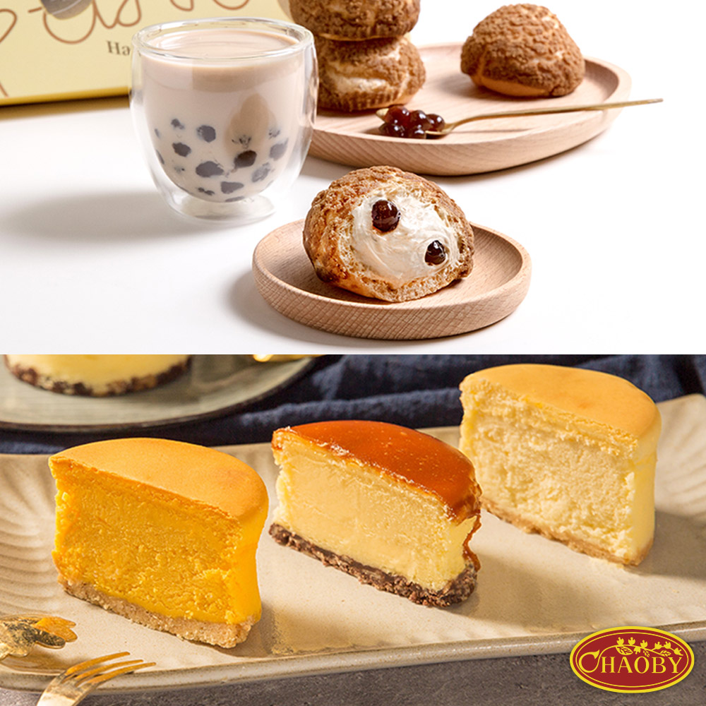 【超比食品】甜點夢工廠超值組(綜合靈魂乳酪2盒+珍奶桃酥泡芙1盒)