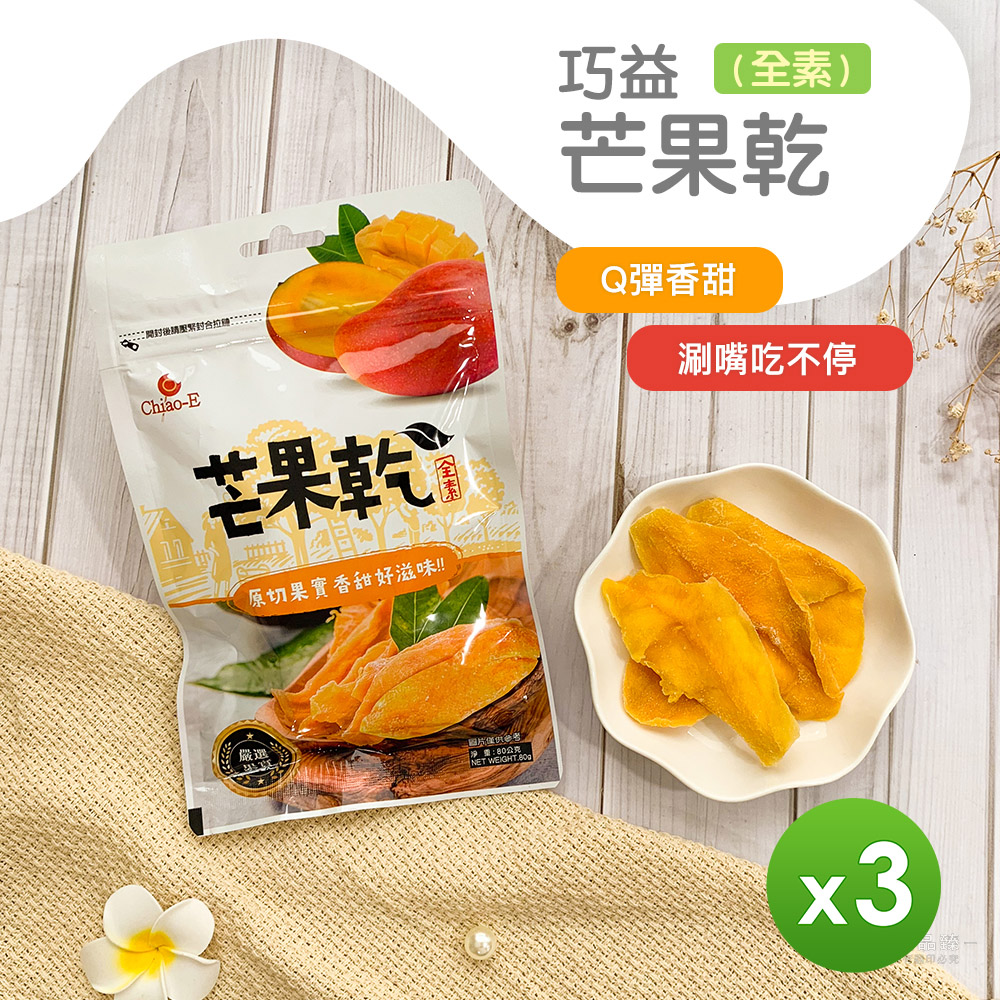 【巧益】芒果乾(80g)&愛文芒果青(50g)_3包組 芒果乾*3