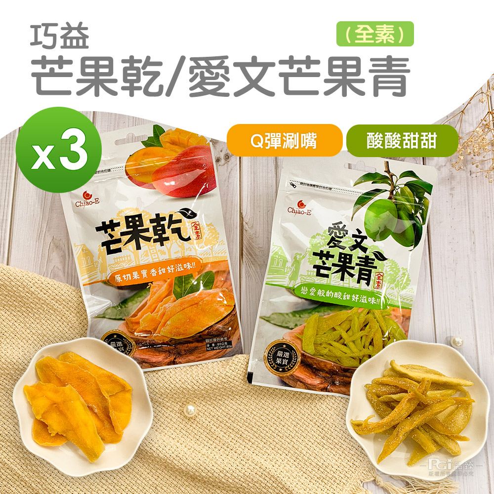 【巧益】芒果乾(80g)&愛文芒果青(50g)_3包組 芒果乾*2+愛文芒果青*1