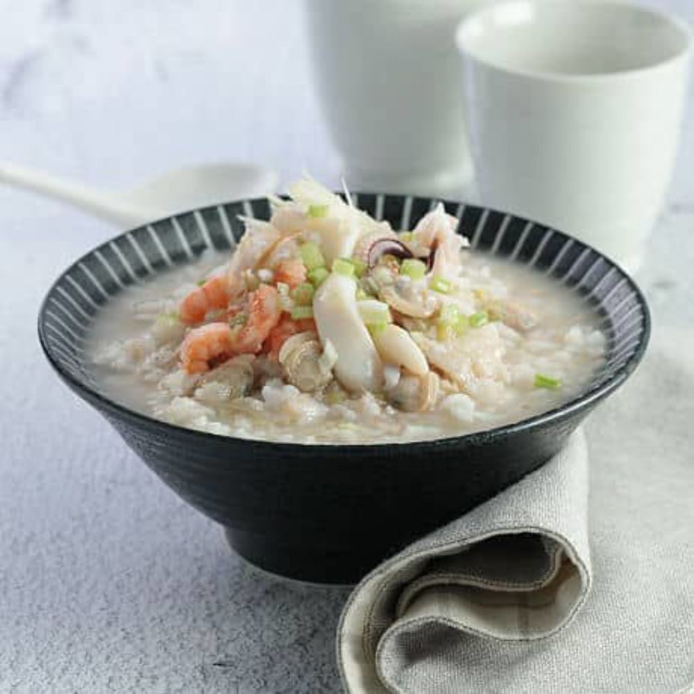 最佳賣點 : 使用放山古早雞以小火熬煮4小時的濃縮雞湯,再添加1 : 8的糙米與白米,帶出天然米香味及豐富的膳食纖維、礦物質及維生素。加上滿滿安心鯛魚、澎湖野生花枝、海水生態蝦仁及文蛤,補充優質蛋白及鮮甜海味。