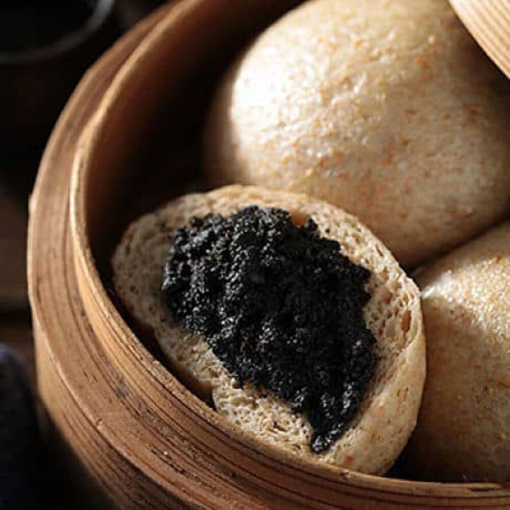 最佳賣點 : 含66%全麥成份,不是漂白麵粉,麵皮由老麵糰發酵,非一般糖發皮,老師傅純手工製作,不是機器包子。將黑芝麻與手工柴燒黑糖與奶油絞拌均勻做成餡料,再用Q彈之老麵皮將其包裹住,做成一顆顆的包子。甜味來自台南關山的黑糖,以古法柴燒製成,甜味層次豐富。