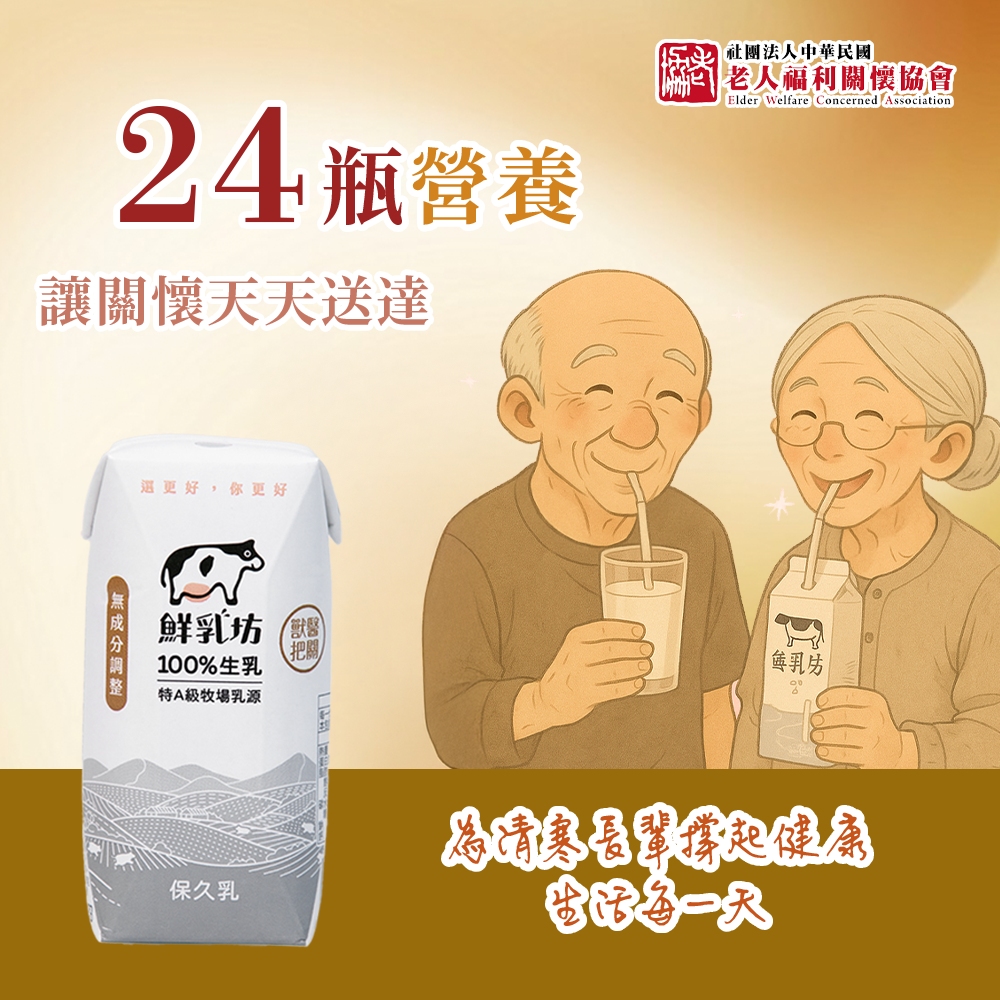 《老人福利關懷協會 x 鮮乳坊》每月營養守護者公益募集(原味保久乳x24瓶)(購買者本人不會收到商品)