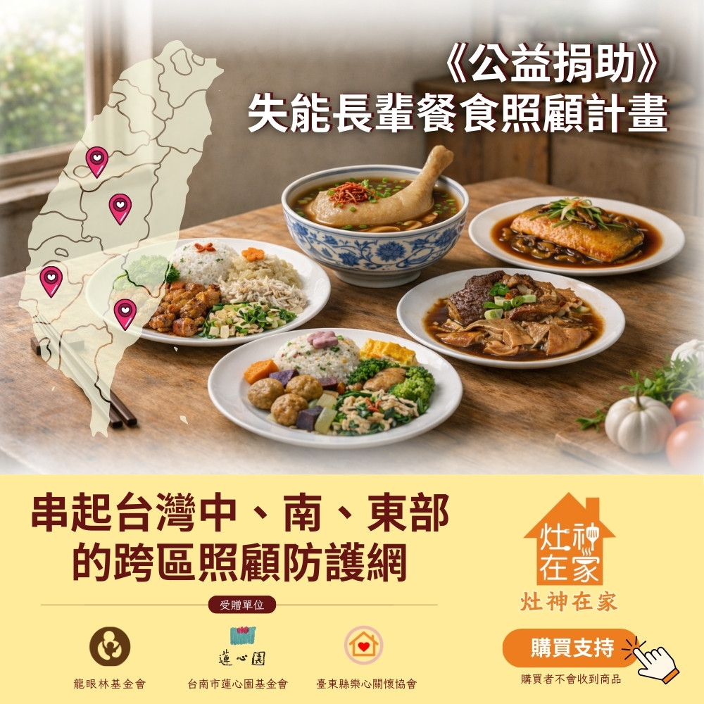 《灶神在家》《公益捐助》失能長輩餐食照顧計畫_串起台灣中、南、東部的跨區照顧防護網(捐贈者不會收到商品)