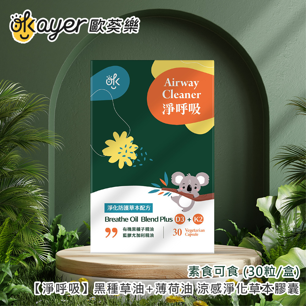 【歐葵樂】淨呼吸 黑種草油+薄荷油涼感淨化草本膠囊 (素食可食 30粒 盒)