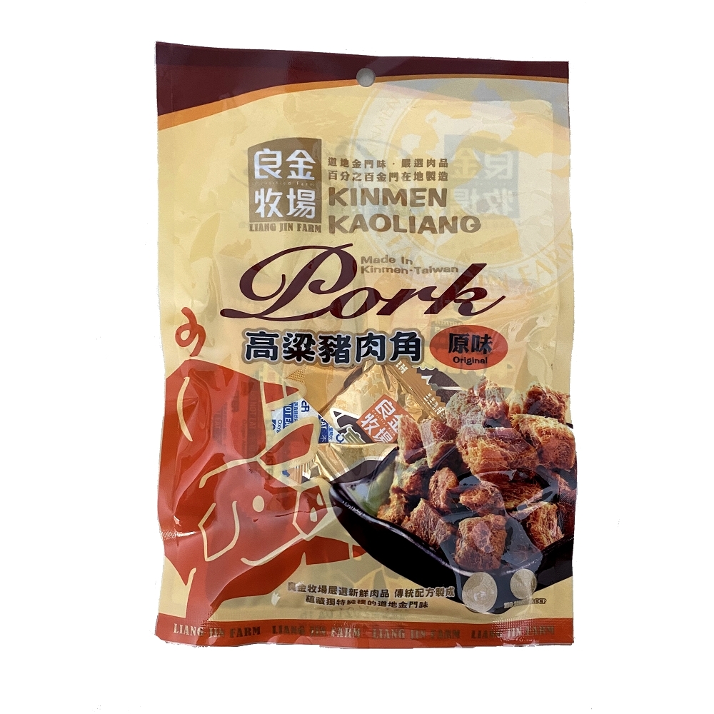 商品描述 | 【良金牧場】金門高粱豬肉角-原味(90g 包):金門最佳十大伴手禮百分之百金門在地製造自營牧場飼養金門酒糟牛高粱豬肉角(原味):精選豬肉、糖、醬油、高梁酒、鹽、甘草添加 |