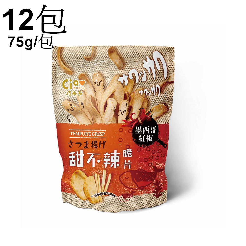 | 簡介 / | 【巧米多】墨西哥紅椒甜不辣脆片12包(75g 包)免運:品名:巧米多甜不辣脆片-墨西哥紅椒成分:魚漿、樹薯澱粉、棕櫚油、食鹽、大蒜、味噌、己二烯酸鉀(防腐劑)、醋磺內酯鉀( |