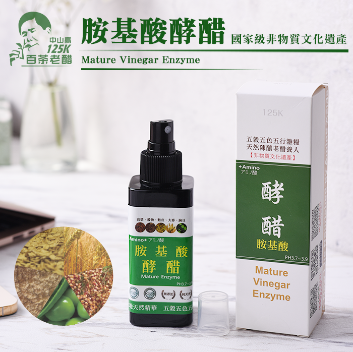 商品描述 | 【125K百茶老醋】胺基酸酵醋120ml:“茶醋若水、天人和合”醋養身體更健康、醋調佳餚更美味、醋讓生活更美好胺基酸酵醋是純天然的胺基酸五穀雜糧古法陳釀工藝82種純手工釀 |