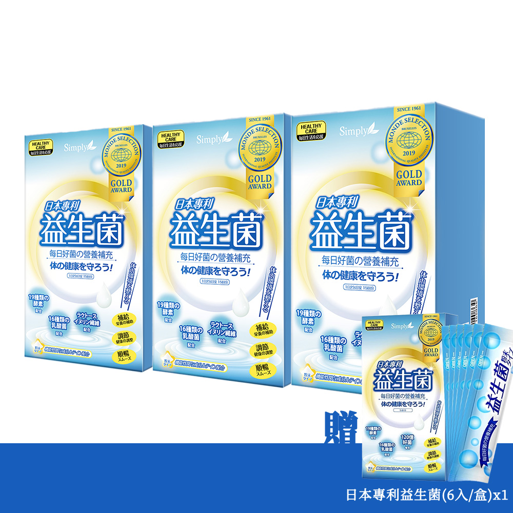 【Simply新普利】日本專利益生菌 (30包 盒)x3 加贈日本專利益生菌(6入 盒)x1