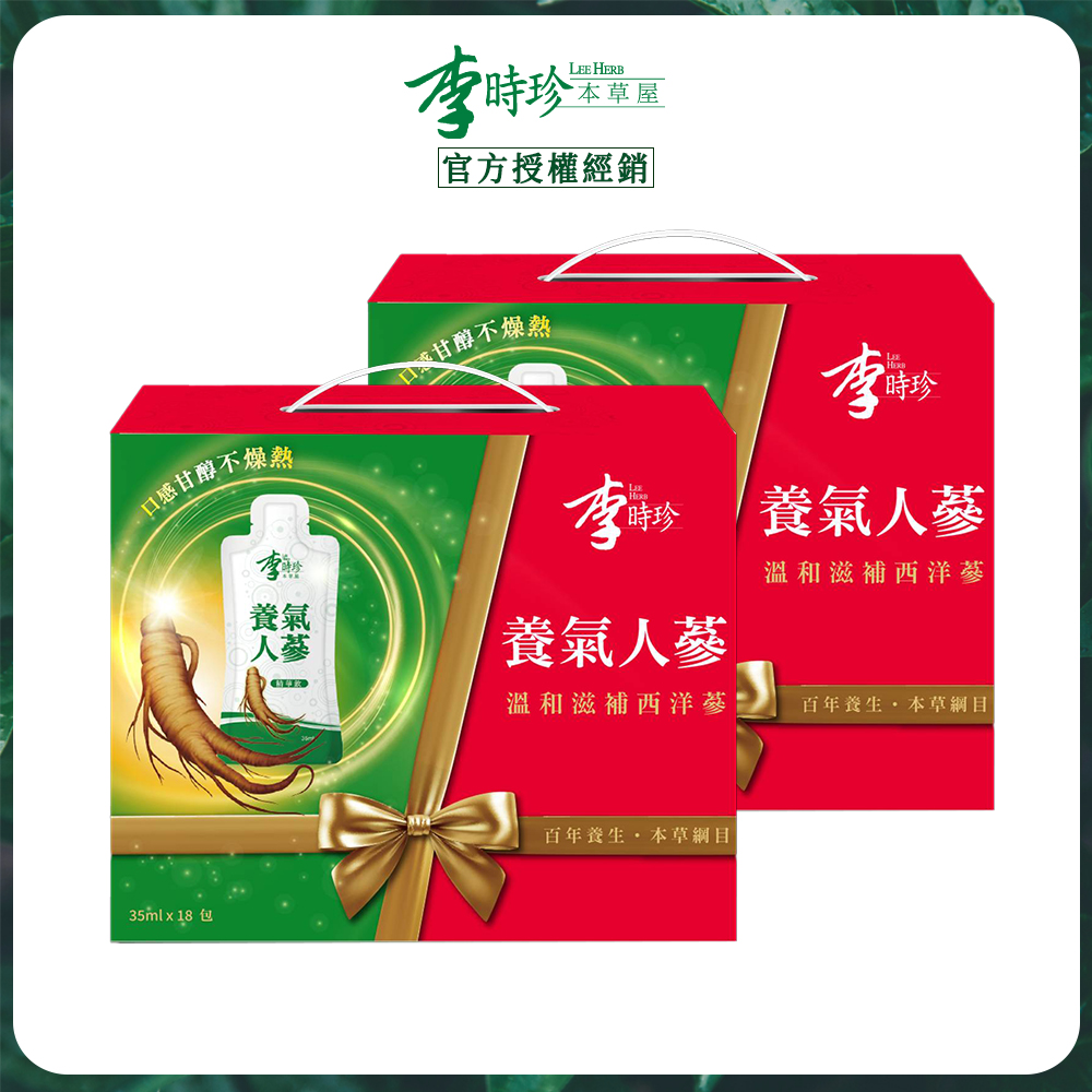 | 簡介 / | 【李時珍】養氣人蔘精華飲x2盒 (18入 盒):1.商品組合 規格:一盒18包2.商品品名:李時珍-養氣人蔘精華飲3.商品重(容)量:35mlx1包4.內容物名稱(成分):純水、西洋蔘白蔘萃 |