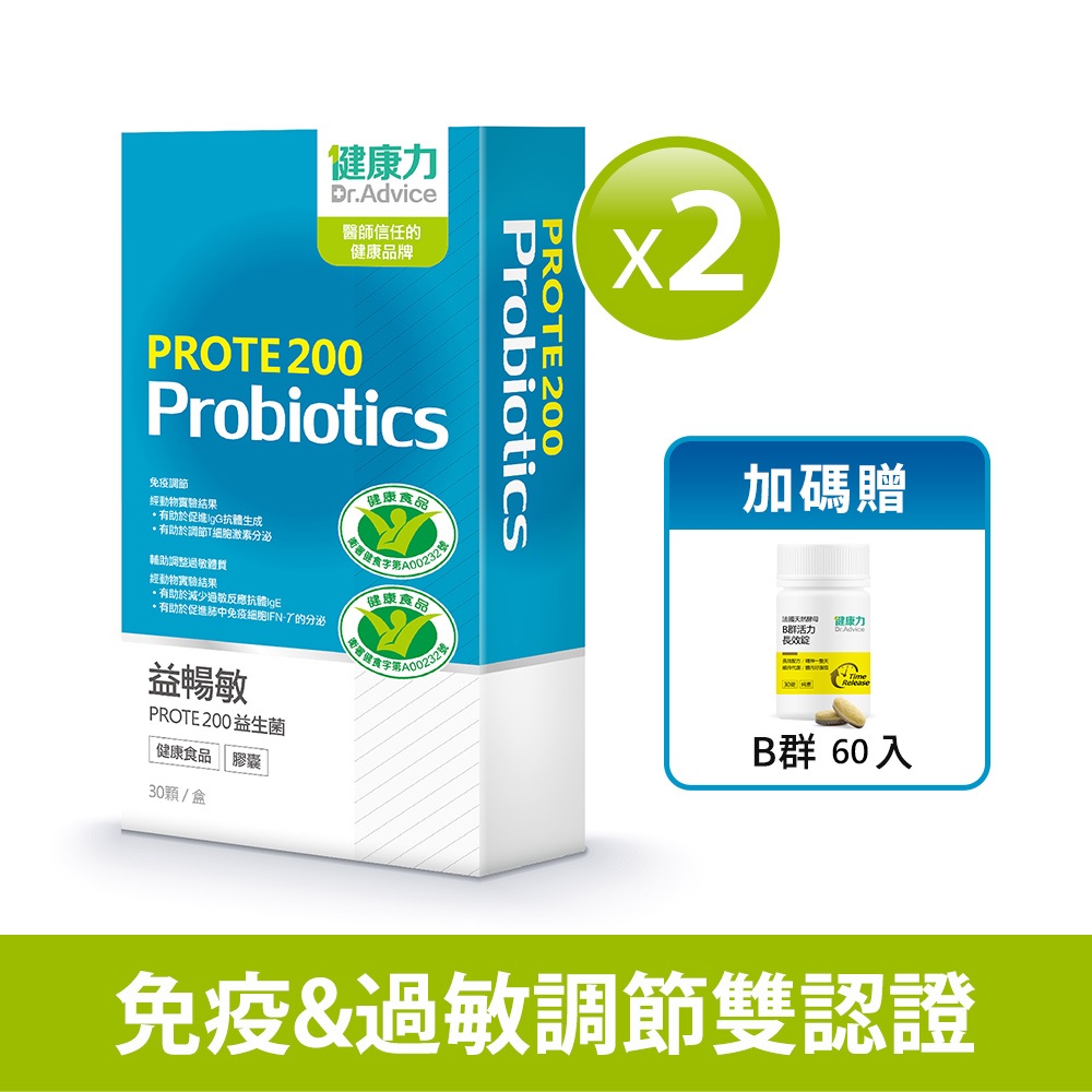 【健康力】PROTE200免疫力益生菌30顆X2盒 贈B群60入X1瓶-冷藏配送