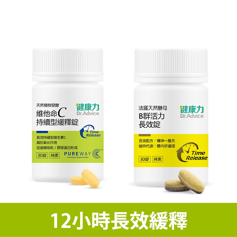 【健康力】天然維他命C緩釋錠30錠X1+天然B群30錠X1