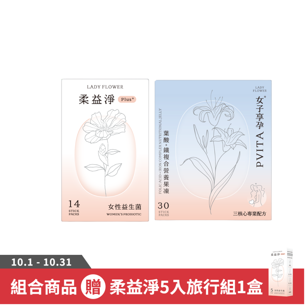 【LADY FLOWER】柔益淨 女性益生菌 Plus輕巧包(14包 盒)+女子享孕營養果凍(30包 盒)