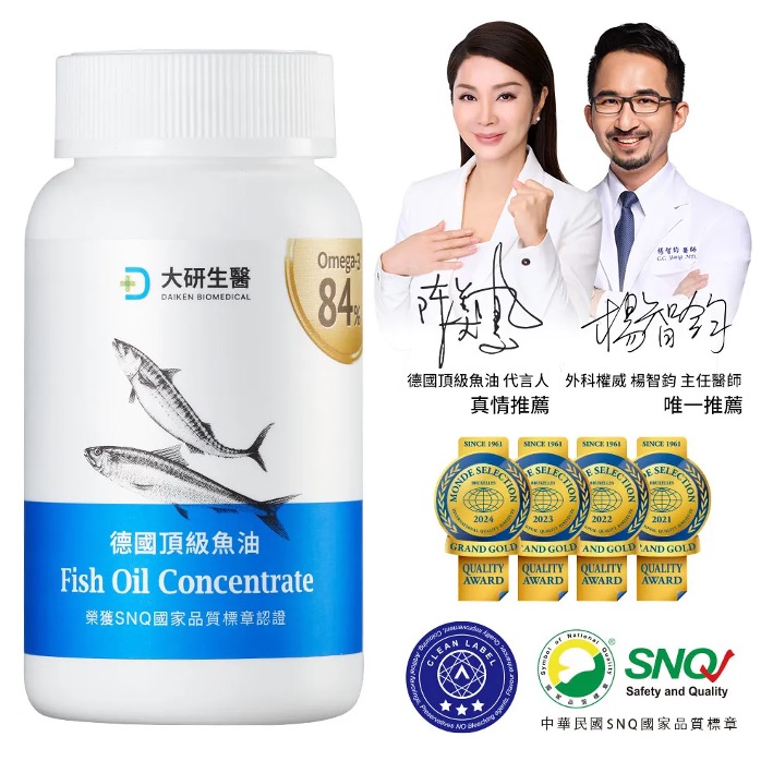 | 商品描述 | 大研生醫 德國頂級魚油軟膠囊 60粒:最專業|德國KD大廠合作製造,榮獲21+3項國際專利肯定。高濃度|嚴選Omega-3脂肪酸84%以上的高濃度魚油。很有感|rTG型態魚油,吸收率1 |