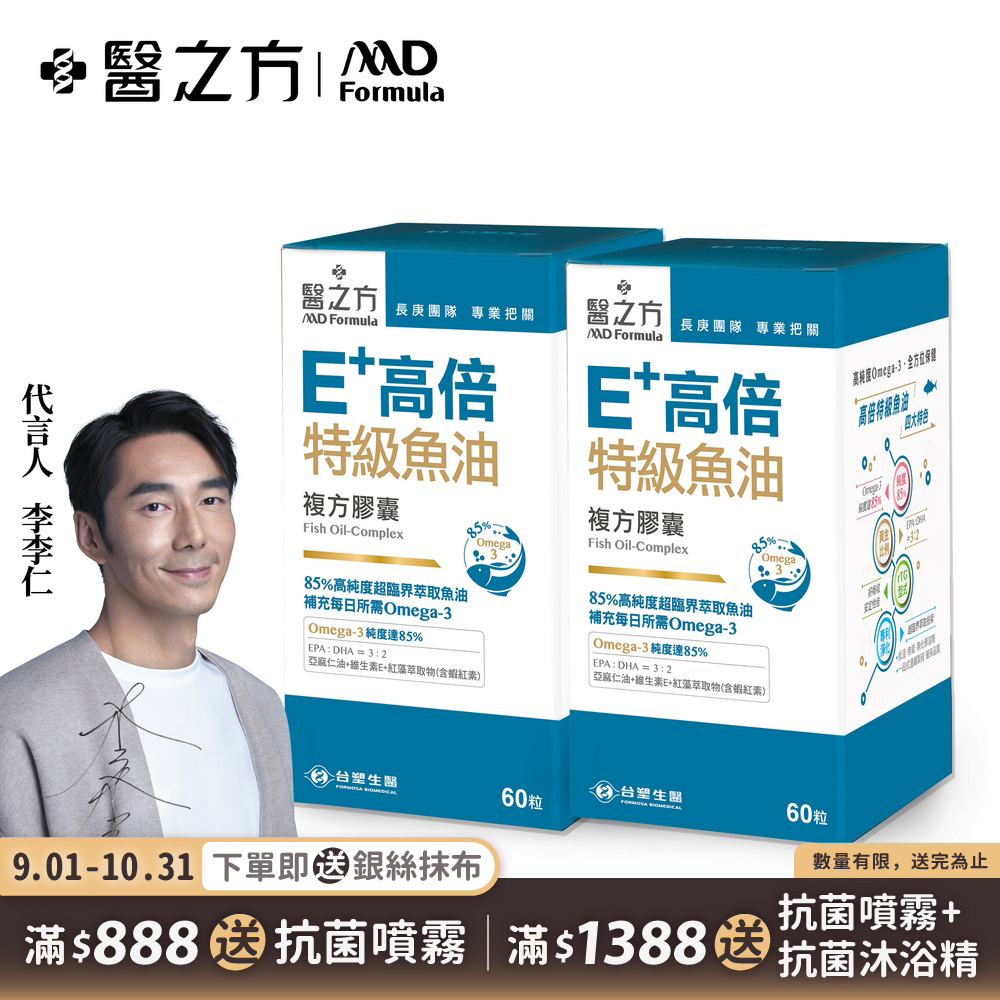【台塑生醫】E+高倍特級魚油複方膠囊(60粒 瓶) 2瓶 組