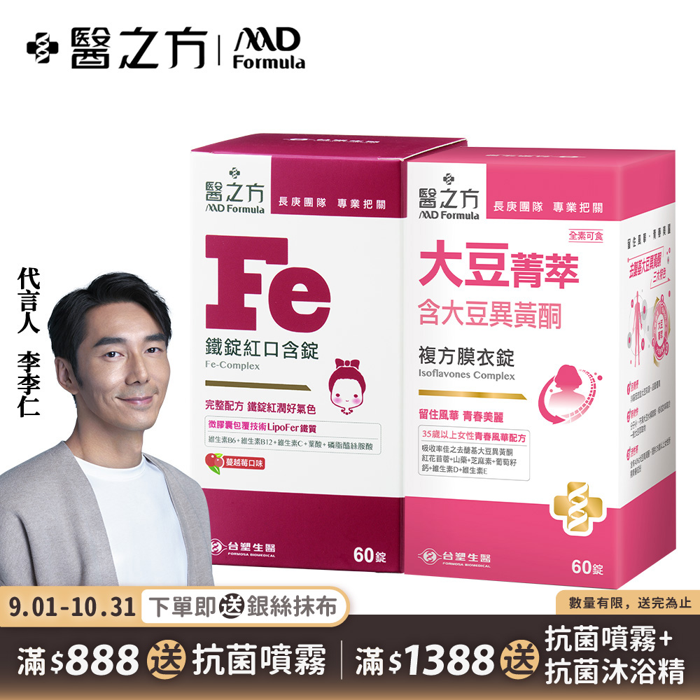 最佳賣點 : 【台塑生醫】鐵錠紅口含膜衣錠(60錠/瓶) +大豆菁萃複方膜衣錠(60錠)