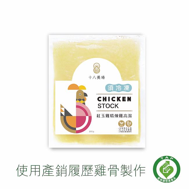 採用自養高品質紅玉雞背骨搭配蔥、洋蔥、與薑慢熬而成,融入雞隻的精髓與風味。料理時加上一包精煉雞高湯,湯底、稀飯、麵食、火鍋皆適合。只需一包高湯即可增添料理風味,減少下廚熬製時間,美味輕鬆端上桌,不添加多於調味料和防腐劑,食安問題零煩惱。