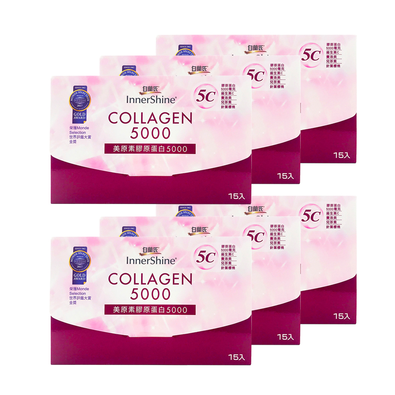 內容簡介 法國小分子膠原結合頂級「賽洛美」,光采水潤,全面提升!品質一致肯定!一天一包,單包包裝攜帶方便!1.商品組合:白蘭氏 美原素膠原蛋白5000 (15條 盒)*6組2.商品規格:6組3.商品品名:白蘭氏 美原素膠原蛋白5000 (15條 盒)4.商品(容)量:15條 盒5.內容物名稱(成分):膠原蛋白、麥芽糊精、針葉櫻桃粉(麥芽糊精、維生素C、針葉櫻桃萃取物)、綜合莓果香料(阿拉伯膠、麥芽糖醇糖漿、綜合莓果香料)、綠茶萃取物(含兒茶素)、玄米萃取物[玉米糊精、米萃取物(含賽洛美)]、蔗糖素(甜味劑)6.食品添加物名稱:麥芽糖醇糖漿、維生素C、蔗糖素(甜味劑)7.原產地(國):台灣8.製造廠商或國内負責廠商名稱:馬來西亞商白蘭氏三得利股份有限公司台灣分公司9.製造廠商或國內負責廠商地址:台北市松山區敦化北路88號13樓10.製造廠商或國內責廠商电話:0800-077-99911.以消費者收受日算起,至少距有日期前幾日以上:180日12.食品業者登錄字號:A-127930041-00000-413.投保產品責任險字號:0800-11CGP00229