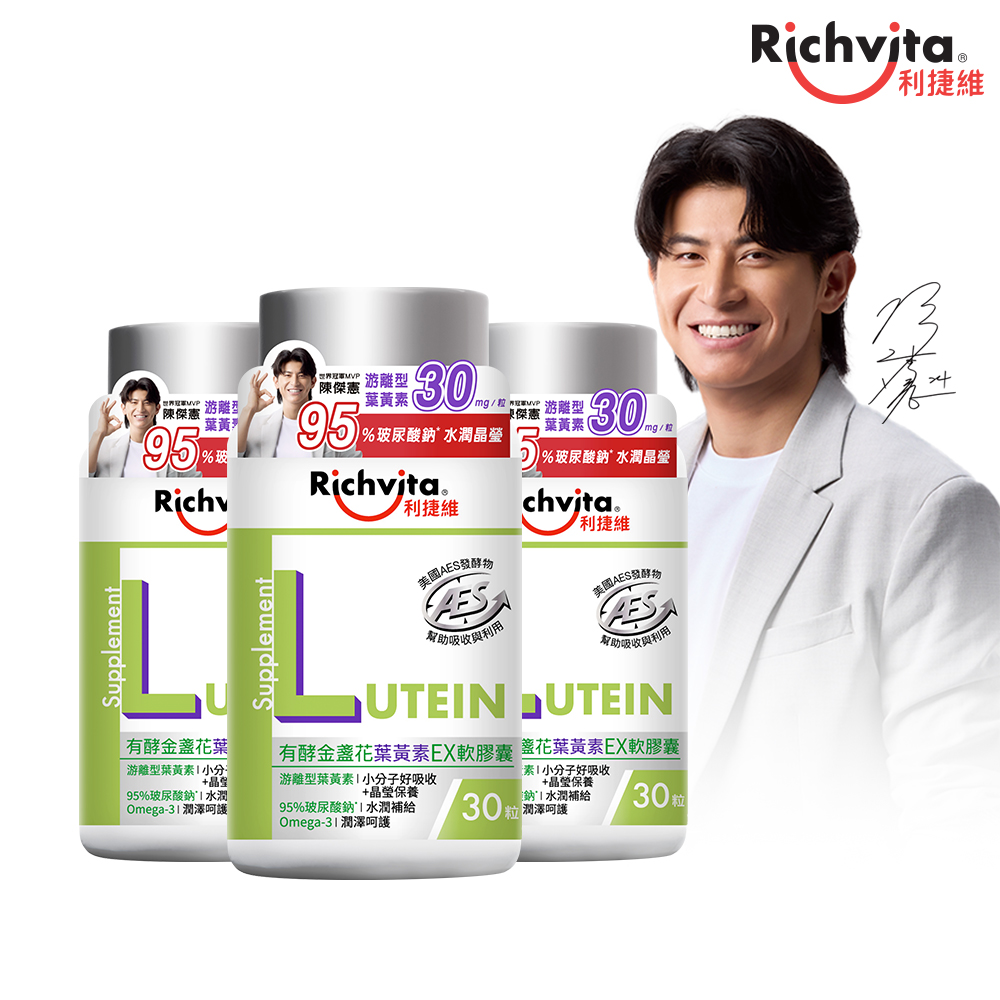 Richvita利捷維 有酵金盞花葉黃素EX軟膠囊(30錠 瓶) x3