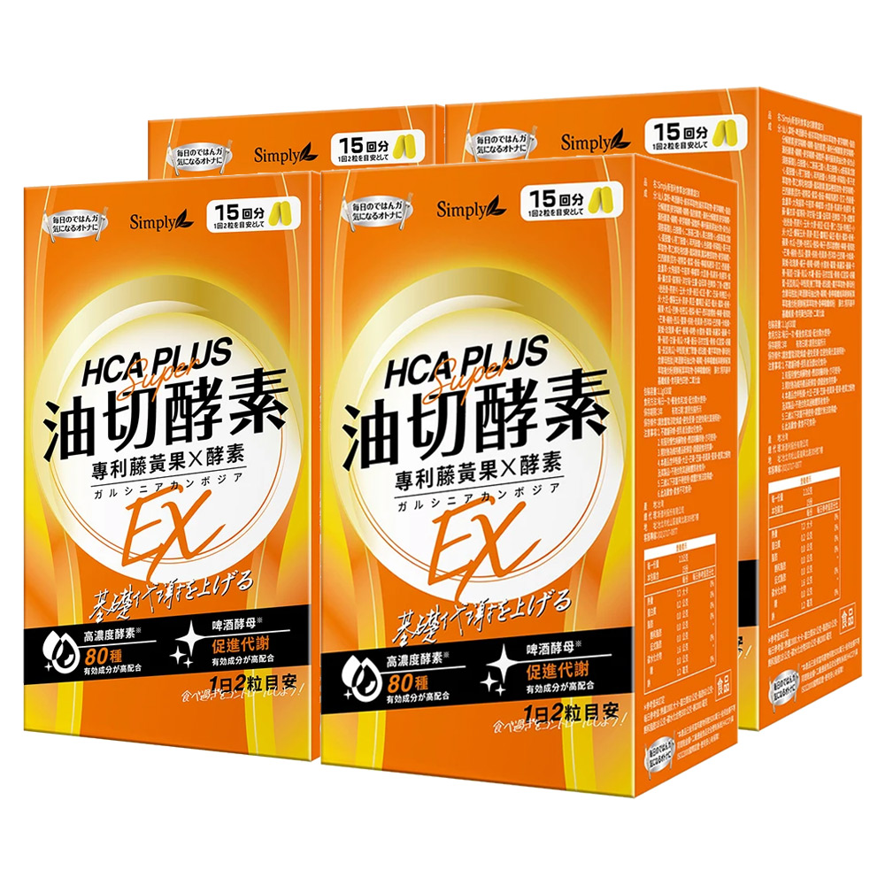 【Simply新普利】食事油切酵素錠EX 4盒組(30錠 盒)