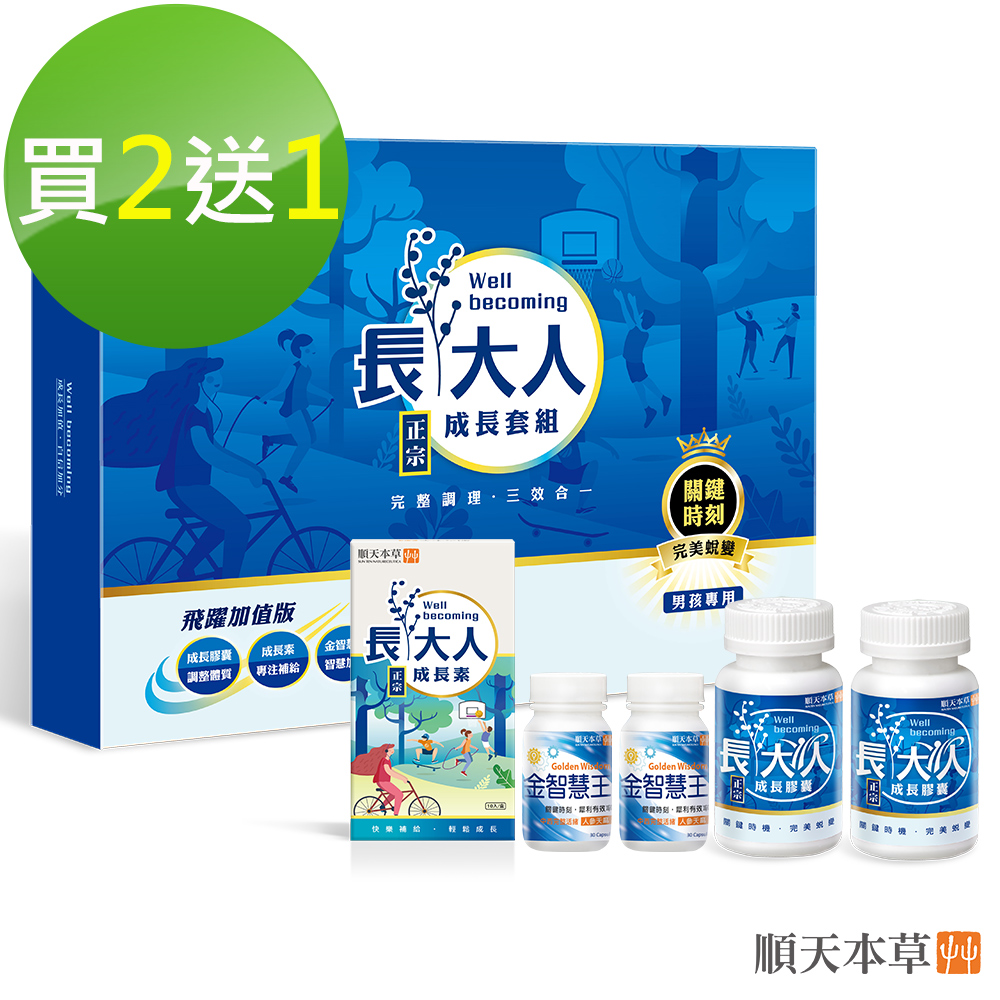 商品描述 | 【順天本草】長大人成長套組飛躍版 買2送1-男方(共3盒+送光亮飲12入):★順天堂集團專業研發,品質有保障★原材熬煮,順口不苦,孩子接受度高★針對男女不同加強調理,茁壯 |
